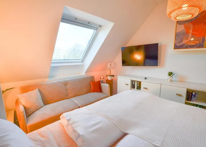 Jednostka wyposażona jest w pełnowymiarową kuchnię. Dania kuchni hiszpańskiej serwowane są również w Purist w 450 metrach. Apartament mieści się 10 km od lotniska Flugplatz Augsburg.